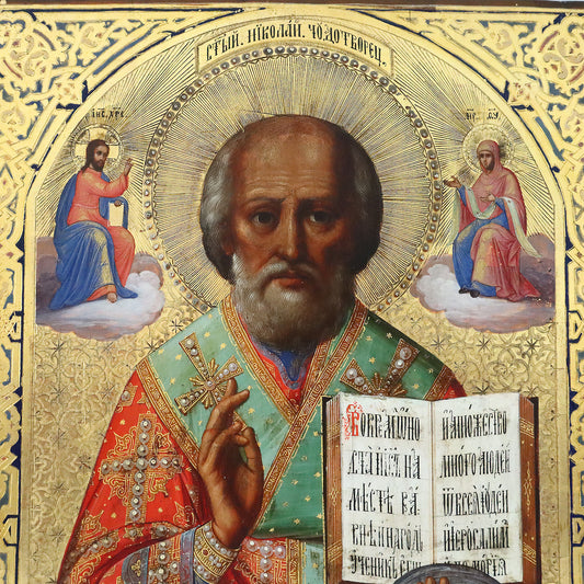 ANTIQUE 19c RUSSIAN PAINTED ICON: Saint Nicholas | 4504 |