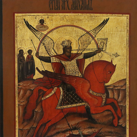 ANTIQUE 19c RUSSIAN PAINTED ICON: Saint Archangel Michael | 5230 |