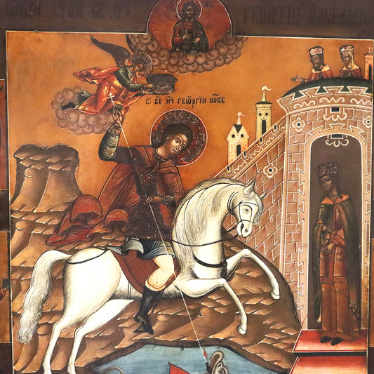 ANTIQUE 19c RUSSIAN PAINTED ICON: Saint George Slaying the Dragon | 5239 |