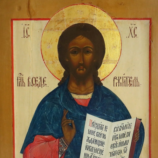 ANTIQUE 19c RUSSIAN PAINTED ICON: CHRIST PANTOKRATOR | 5257 |