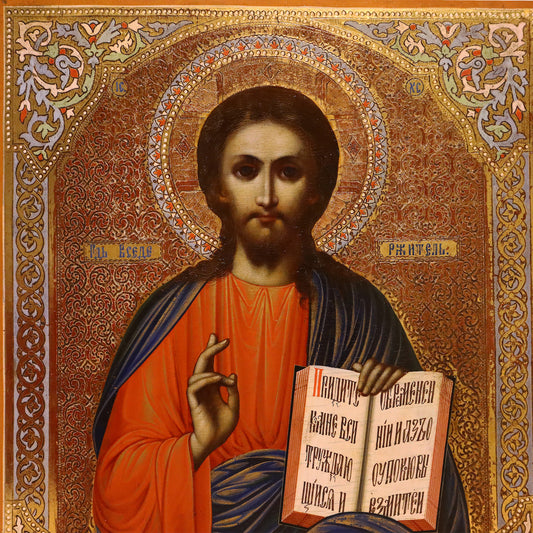 ANTIQUE 19c 84 SILVER RUSSIAN PAINTED ICON: Jesus Christ | 5158 |