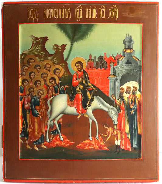 ANTIQUE 19c RUSSIAN PAINTED ICON: Entrance into Jerusalem | 5381 |