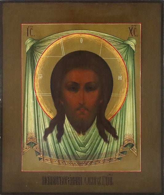 ANTIQUE 19c RUSSIAN PAINTED ICON: Icon of Savior Not Made by Human Hands | 5189 |