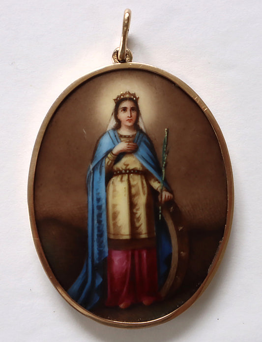 ANTIQUE 19c RUSSIAN PAINTED ICON: Saint Catherine in Gold frame | 5670
