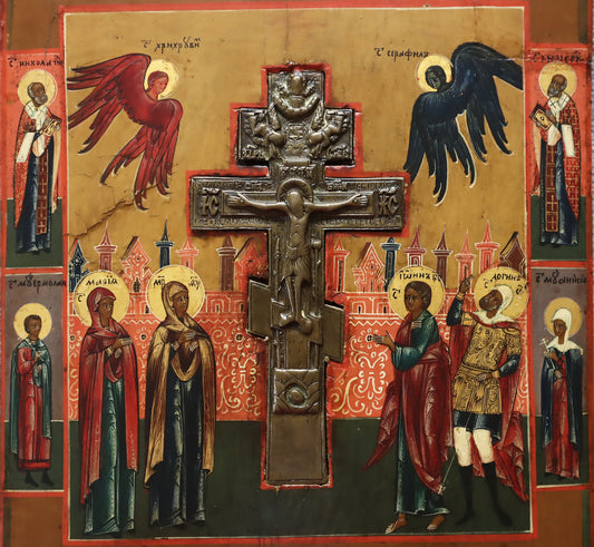 ANTIQUE 19c RUSSIAN PAINTED ICON: THE CRUCIFIXION OF CHRIST | 5521 |