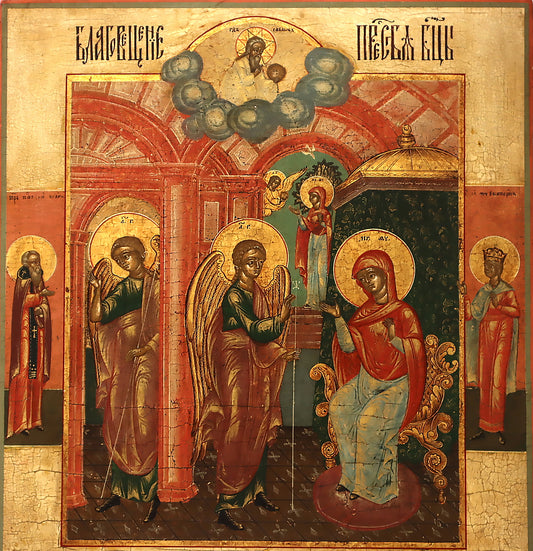 ANTIQUE 19c RUSSIAN PAINTED ICON: Annunciation of Mother of God | 5647 |