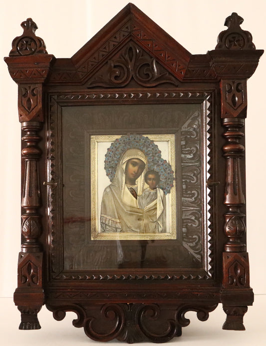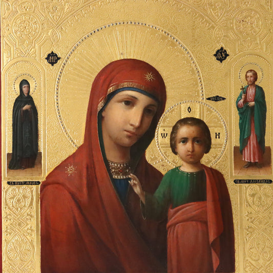 ANTIQUE 19c RUSSIAN PAINTED ICON: Kazan Mother of God | 5276 |