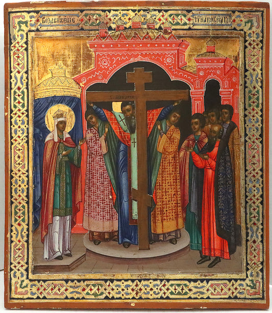 ANTIQUE 19c RUSSIAN PAINTED ICON: The Elevation of the Cross. | 5379 |