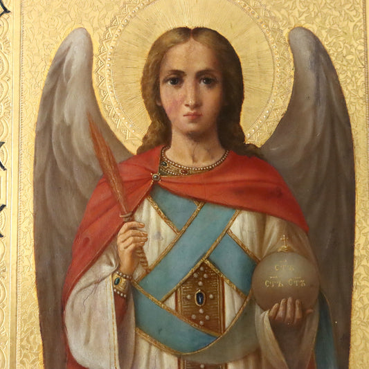 ANTIQUE 19c RUSSIAN PAINTED ICON: Saint Archangel Michael | 5230 |