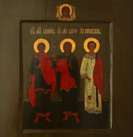 Antique, 19th century, Orthodox Russian Icon of Three Saints: Simon, Guriy and Aviv. | 3862 |