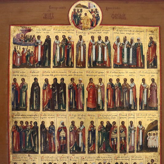 Antique, 19th century, Orthodox Russian Icon of Three Registers with Selected Saints | 4528 |