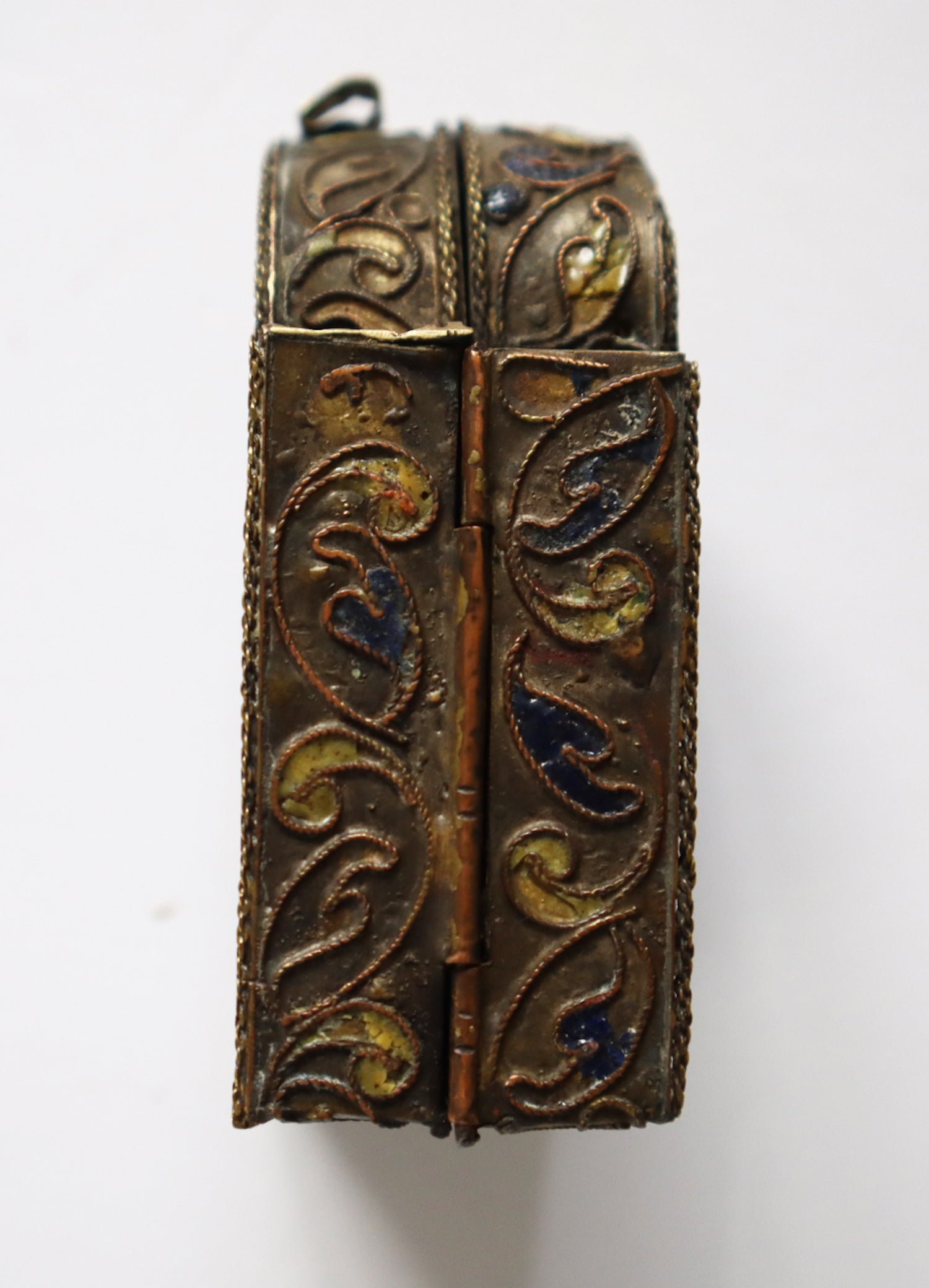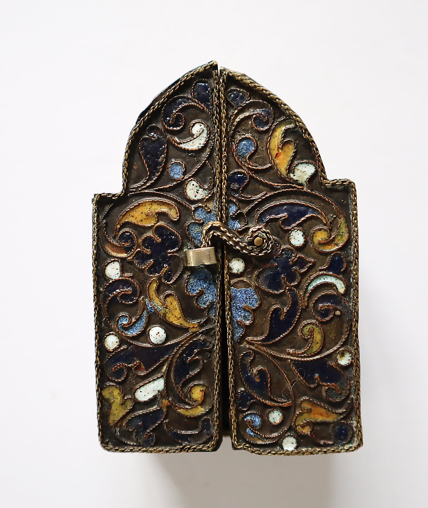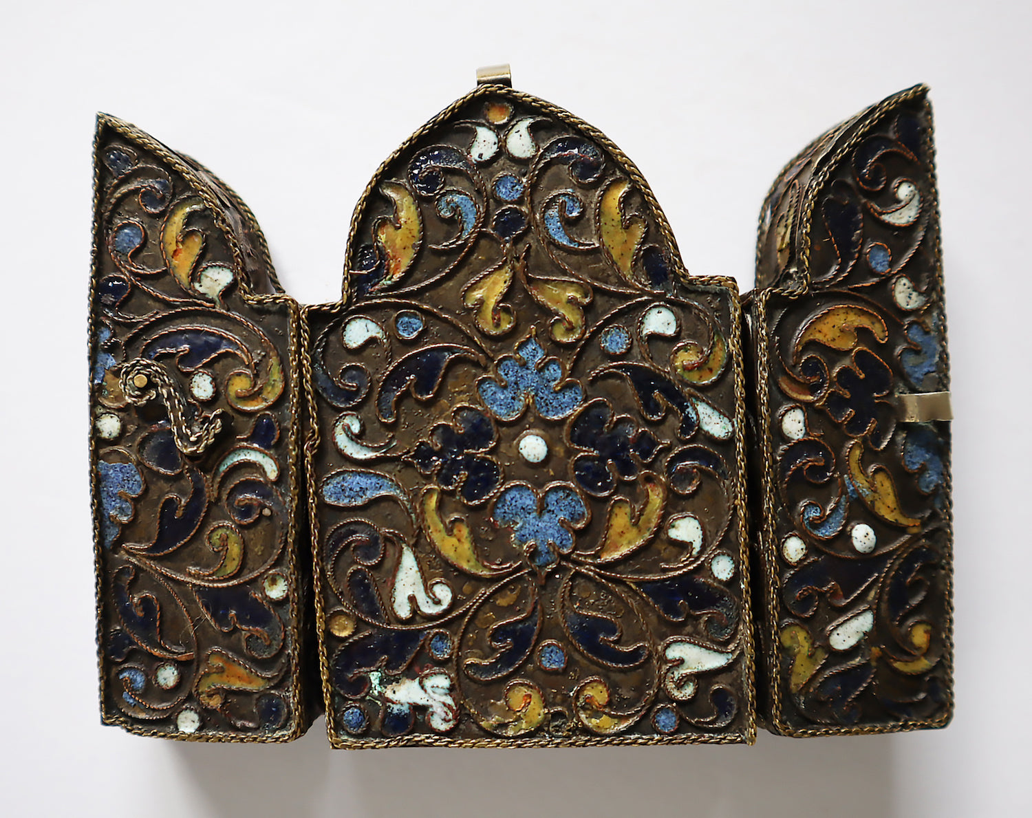 A small travel triptych icon of the Diesis in gilt metal and enamel case, mid-19th century.