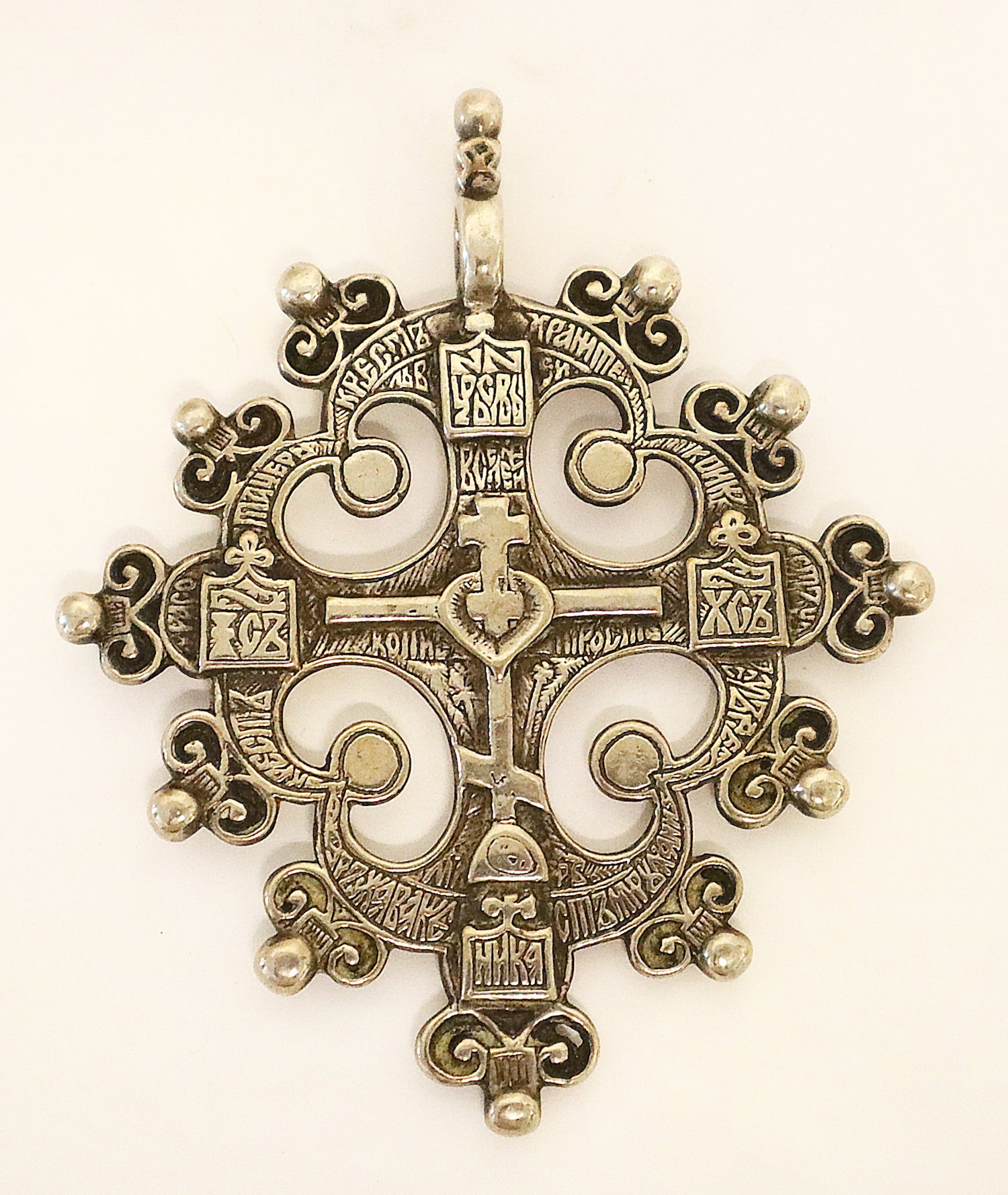 Silver Pectoral cross, engravings in old Russia, Moscow, 17th century. This is a Priest’s cross.