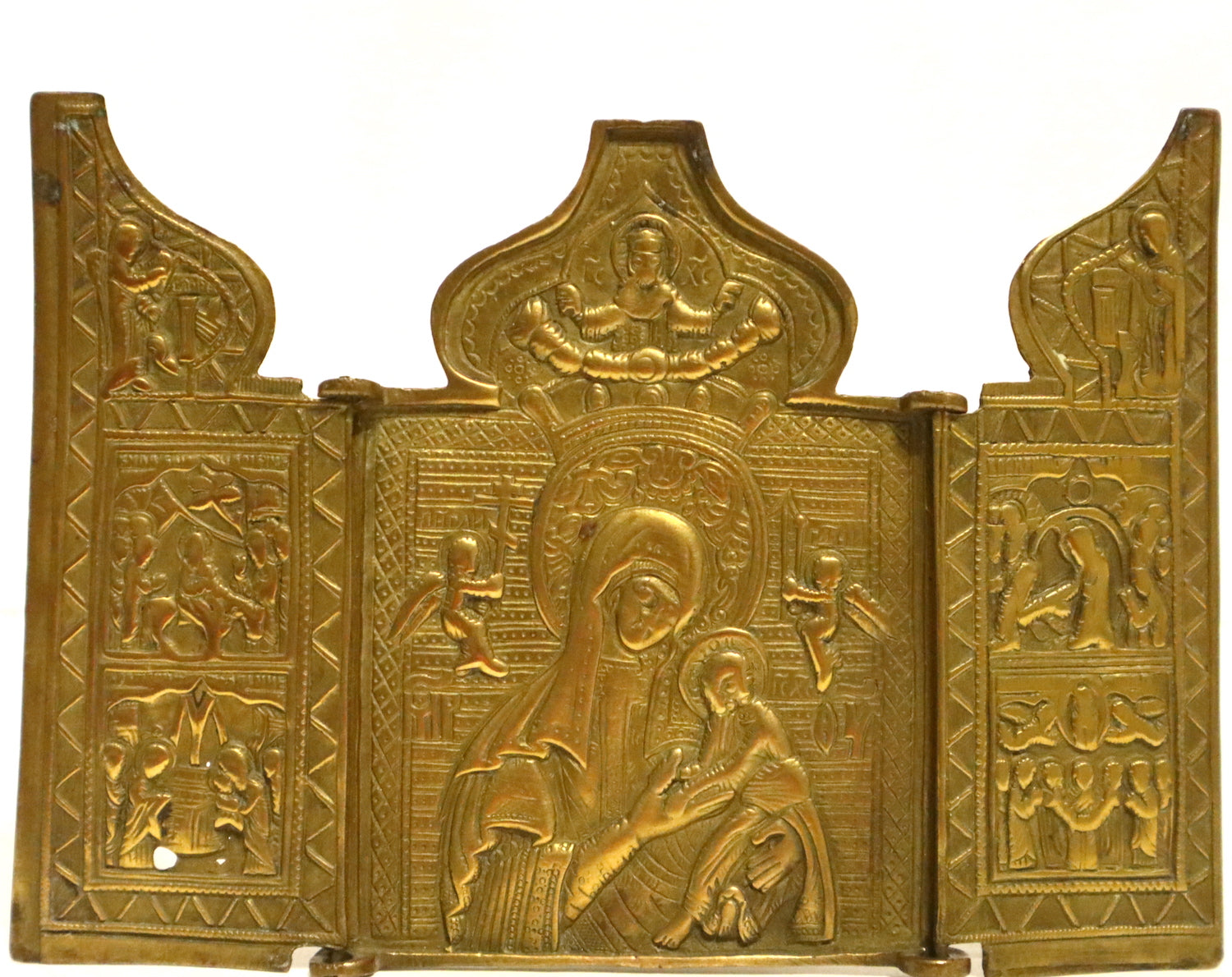 Antiques, Orthodox, Russian Bronze icon-triptych: The Mother of God. | 5317 |
