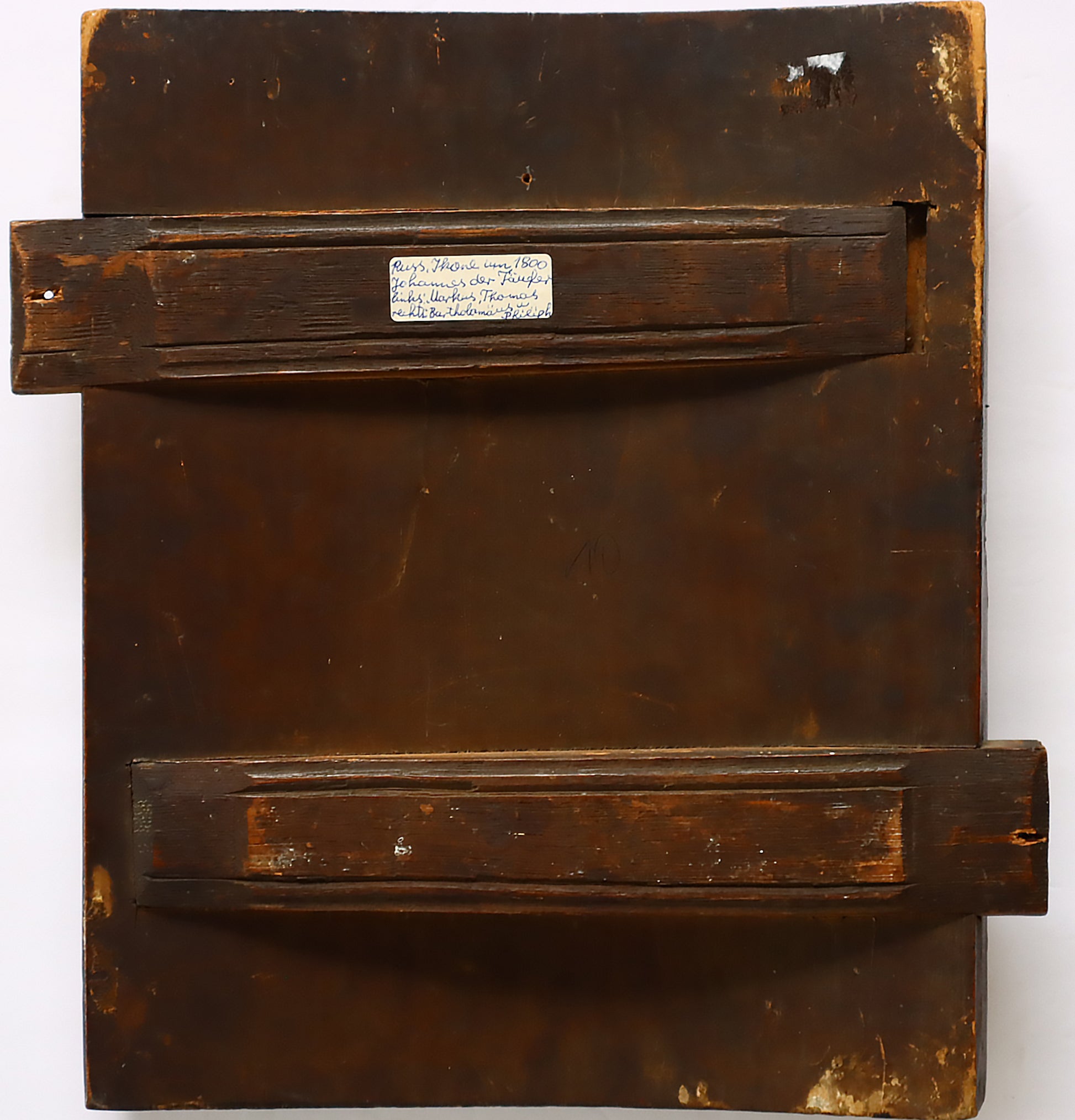 Russia icon around 1800, egg tempera on gesso and wood panel, gilded halo. Single panel with two profiled back sponki, kowtscheg.